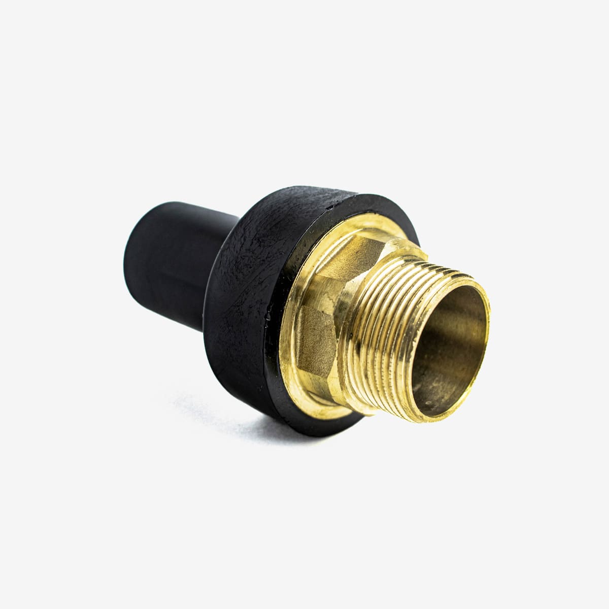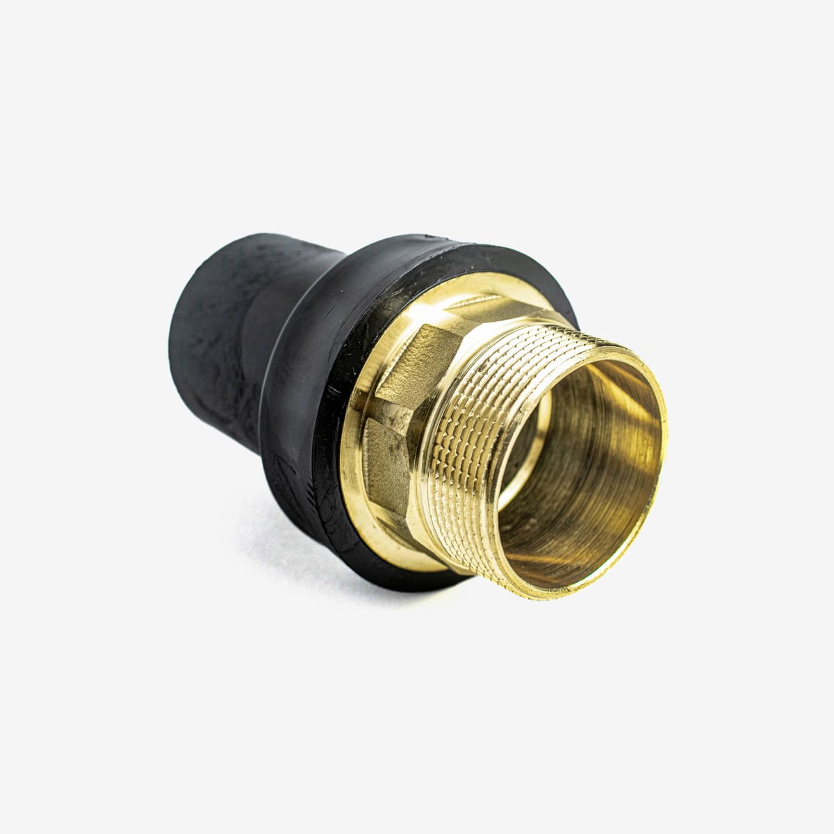 - Присоединение латунной резьбовой части перехода к запорной арматуре или оборудованию выполняется стандартным резьбовым способом с применением уплотнительных материалов (лён, ФУМ-лента, резьбовые герметики), обеспечивающих надёжную герметичность соединения. При монтаже запрещается прикладывать чрезмерные механические усилия, способные привести к повреждению латунной резьбы или полиэтиленовой части фитинга.